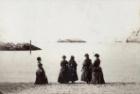 Villégiateurs et pêcheurs sur la chaussée maritime